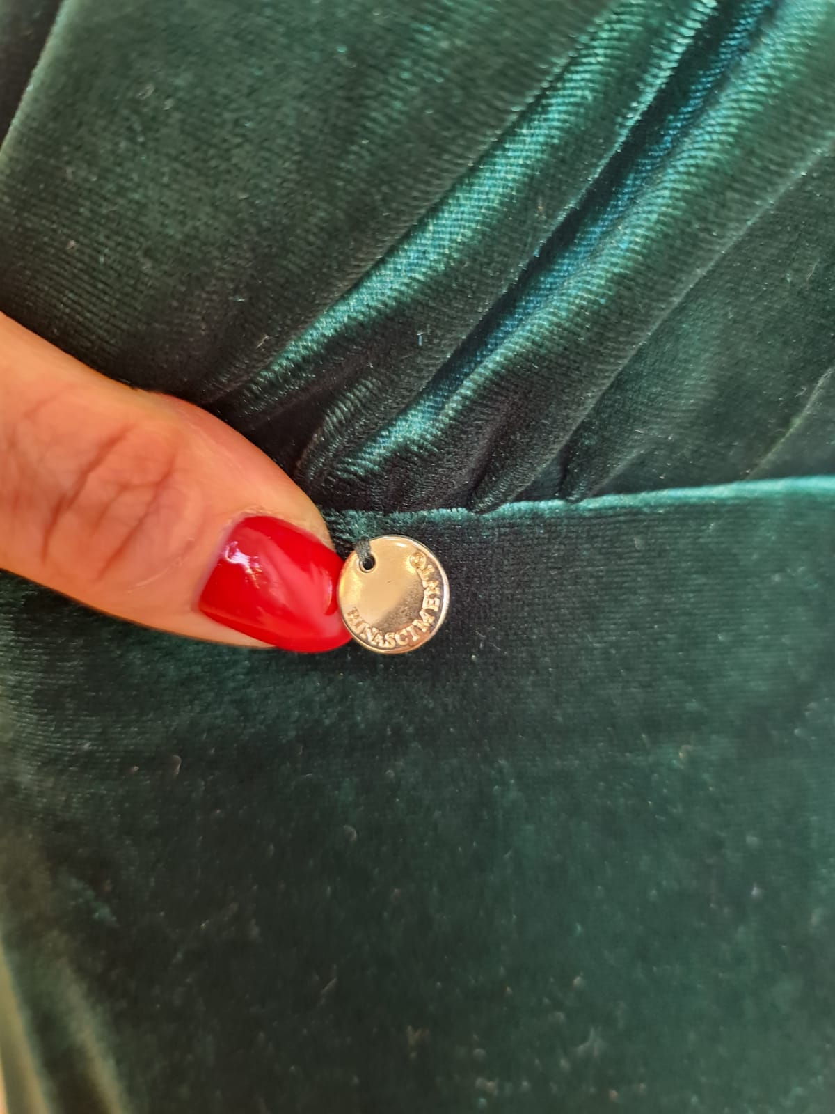 Perfektně padnoucí sametový overal. Materiál obsahuje elestan, proto se přizpůsobí všem ženským křivkám.Overal je na ramenech nabíraný, s vycpávkami. Na zadním díle na zapínání. Kalhoty jsou široké, splývavé.